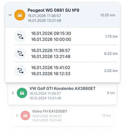 Analyze trip and stop history. Detailed routes for any period in a convenient web interface.
